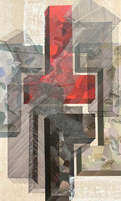 ![]() Encaixes - 2023. 100 x 60cm.Técnica mista, bico de pena em camadas sobre colagem com fragmentos de papel descartado. Base mdf. Foto: DM | ![]() Encaixes 02 - 2023. 44 x 83. Técnica mista, bico de pena em camadas sobre colagem com fragmentos de papel descartado. Base mdf. Foto: DM | ![]() Prismas rebatidos - 2023, 100 x 60cm. Técnica mista, bico de pena em camadas sobre colagem, base mdf. Foto: DM |
